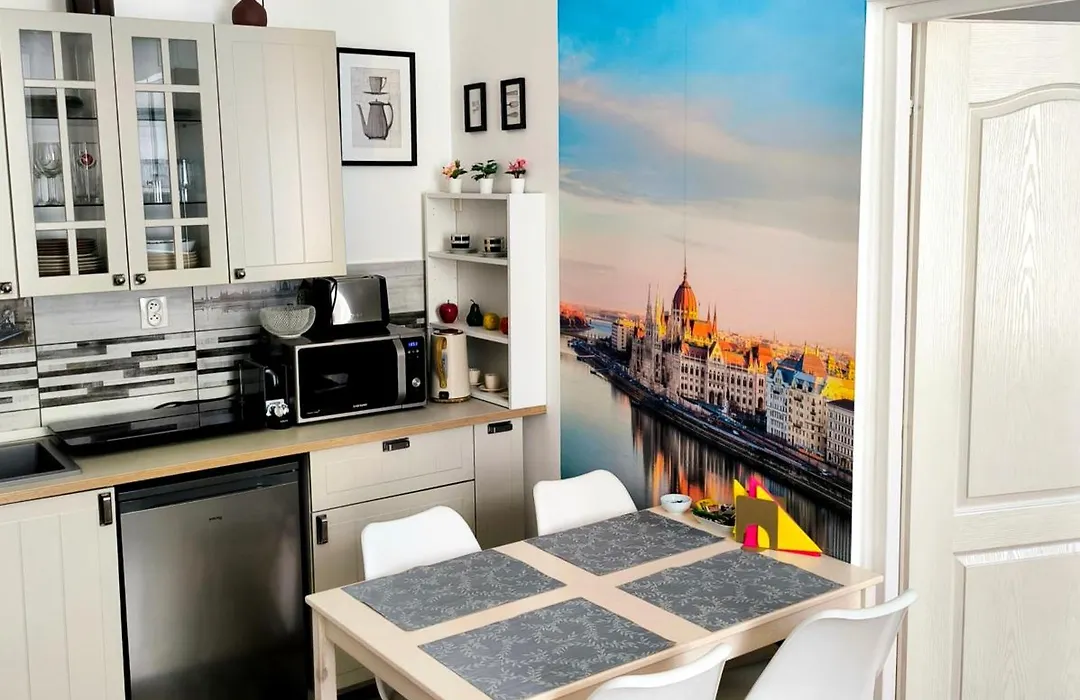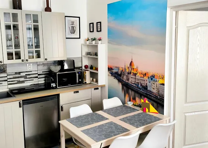 Das Apartment bietet zudem eine voll ausgestattete Küche. Diese Unterkunft verfügt außerdem über einen Esstisch. Das Restaurant Mazel Tov, wo man speisen kann, ist 550 Meter entfernt. Die nächstgelegene Bushaltestelle Szoevetseg utca ist nur wenige Schritte entfernt von der Unterkunft.